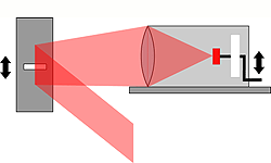 The position of the markers inside the laser line is observed by the receiver. A position sensitive detector generates a signal for the measuring computer.