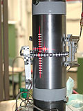 A Laser Extensometer of the type K-100 is used for strain measurement of the longitudinal and lateral strain at rock specimens. The scanning line for lateral strain is tracked, thus the lateral strain is measured allways at the same location of the specimen.